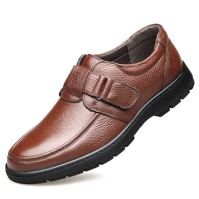 Mænd Klassisk Brief Blød Kohud Slip-on Hook Loop Business Sko