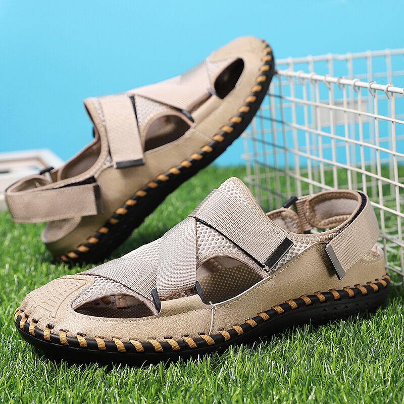 Mænd Koskind Åndbar Lukket Tå Skridsikre Bløde Afslappede Udendørs Sandaler