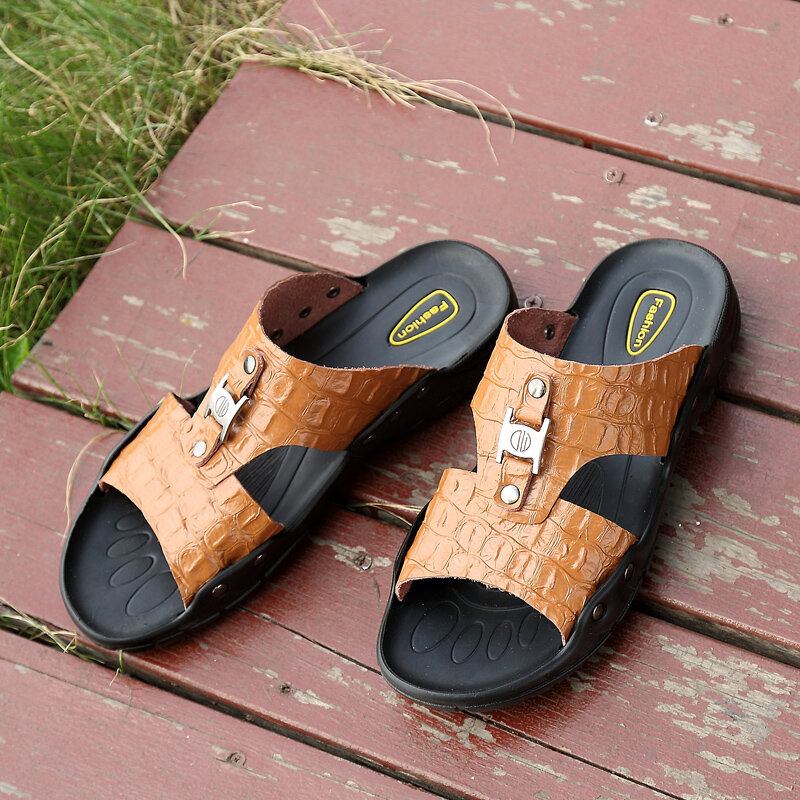 Mænd Koskind Læder Åndbar Blød Bund Skridsikker Behagelig Åbnet Afslappet Hjemmesko