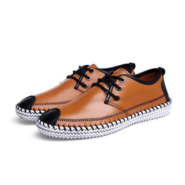 Mænd Koskind Læder Åndbar Håndsyning Blød Sål Trendy Casual Court Sko