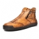 Mænd Læder Åndbar Håndsyning Blød Sål Behagelig Kort Lynlås Casual Ankelstøvler