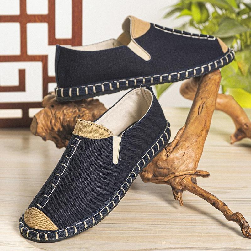 Mænd Lærred Åndbar Skridsikker Håndsyning Behagelige Gamle Peking Afslappede Hørsko