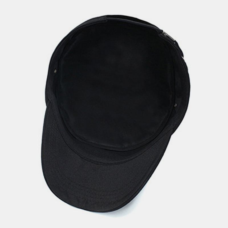 Mænd Metal Label Bred Skygge Åndbart Hul Design Army Kasket Cadet Huer Casual All-match Forår Sommer Solskygge Militær Kasket Flad Top Cap