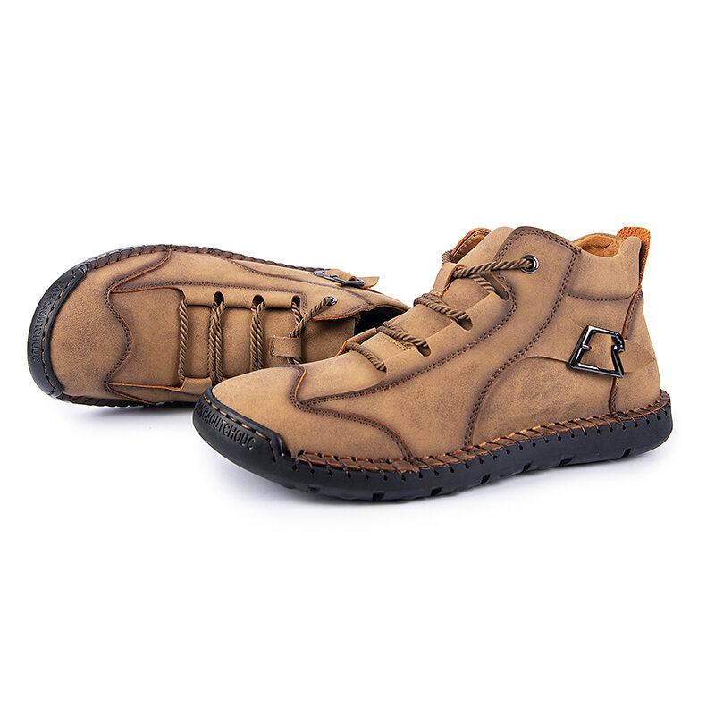 Mænd Mikrofiber Læder Blødt Skridsikkert Håndsyede Ankelstøvler