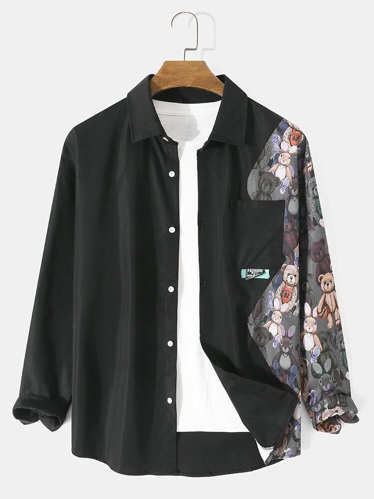 Mænd Patchwork Farve Blok Kontrast Blomster Pullover Sweatshirt