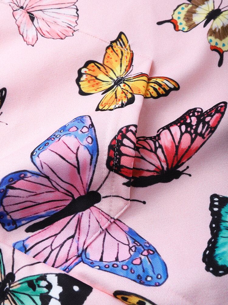 Mænd Sommerfuglemønster Kængurulomme Med Hættetrøje Med Snøre