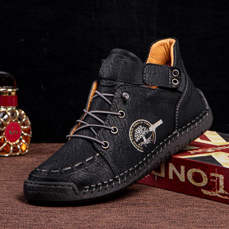 Mænd Syning Læder Anti-kollisions Tåhætte Skridsikker Blød Sål Casual Ankelstøvler