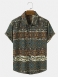 Mænd Tribal Print Patchwork Revers Button Up Hem Manchet Fritidsskjorter