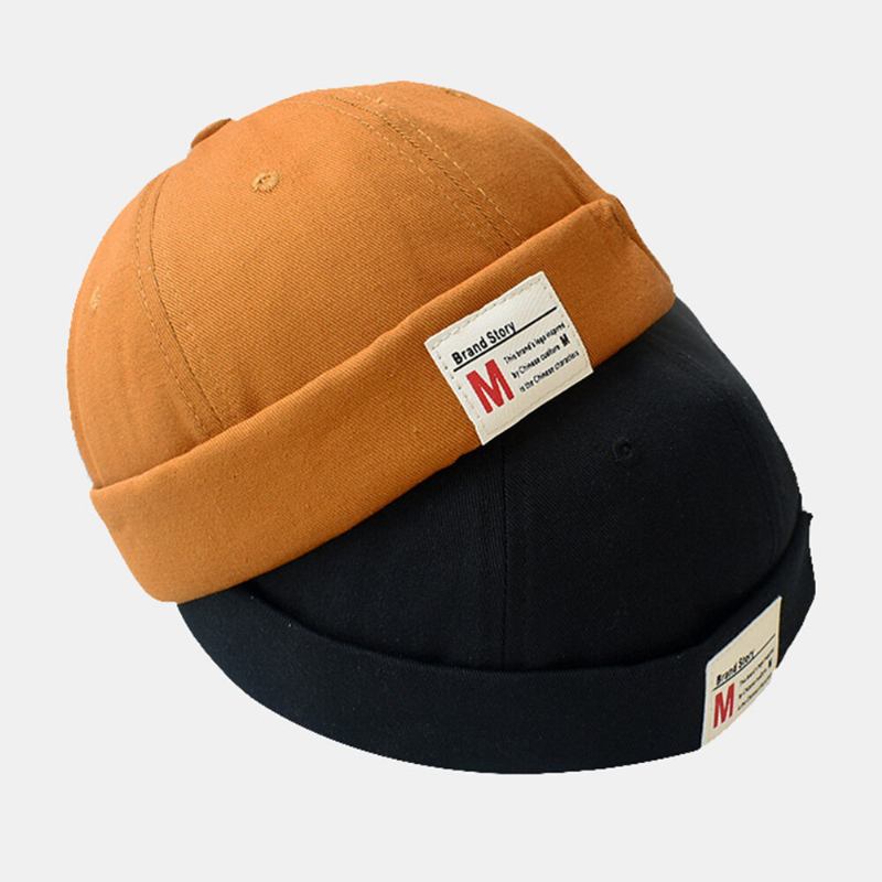 Mænd Udlejer Kasket Bomuld Kuppel Brev Patch Mode Uden Skygge Beanie Skull Cap
