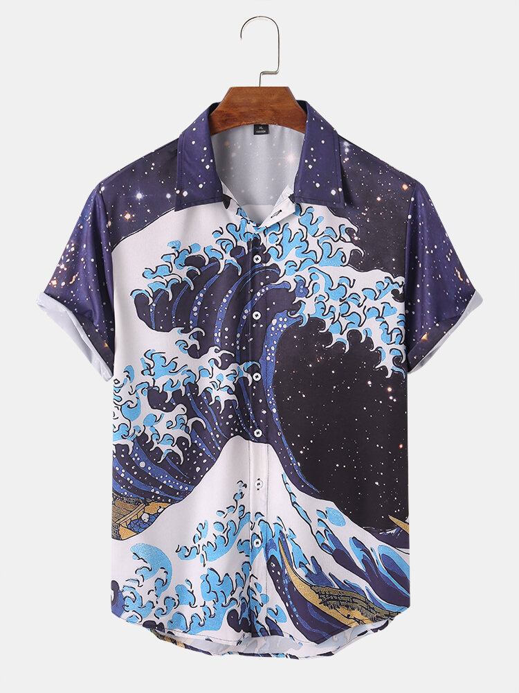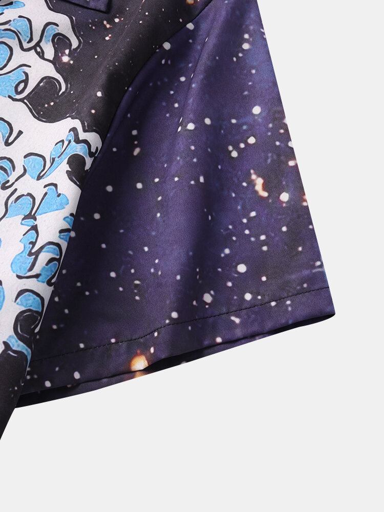 Mænd Ukiyoe Landskab Bjergtryk Lapel Casual Skjorter