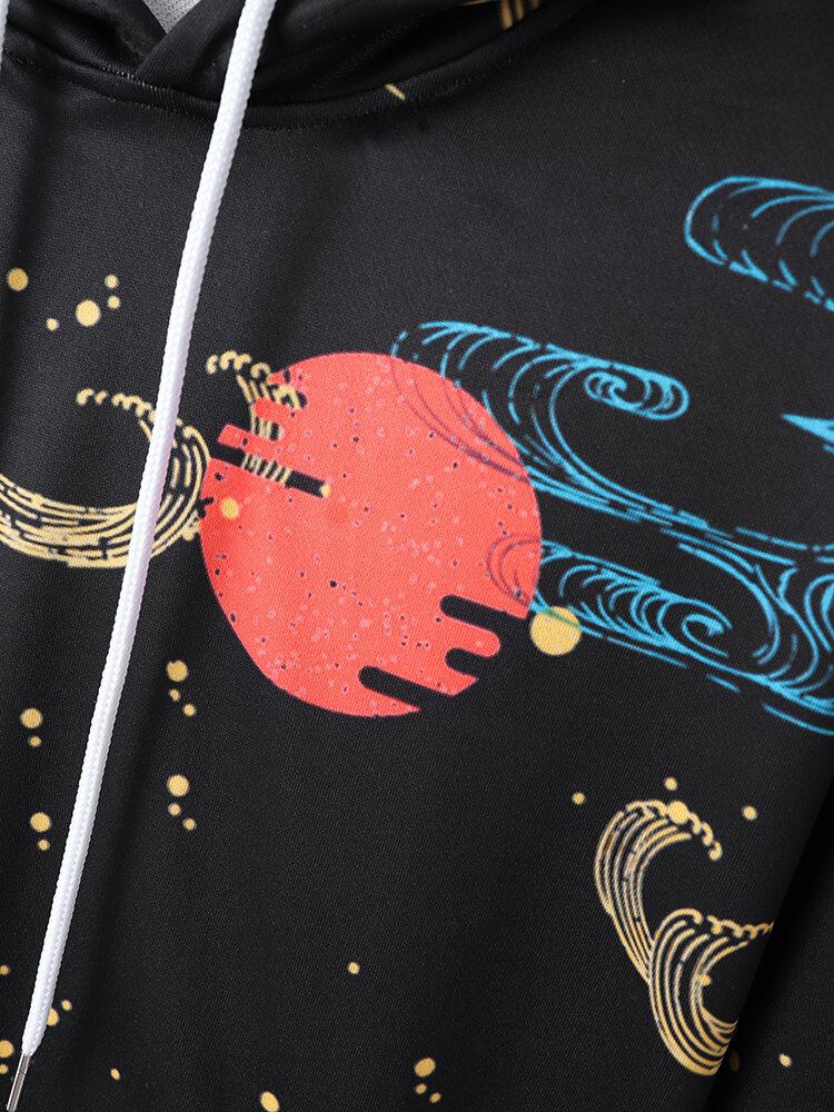 Mænd Ukiyoe Landskabssnor Kængurulomme Casual Hættetrøje
