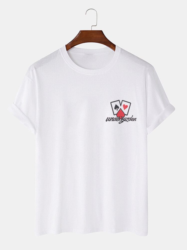 Mænds Afslappede 100% Bomuld Poker Brysttryk Kortærmede T-shirts