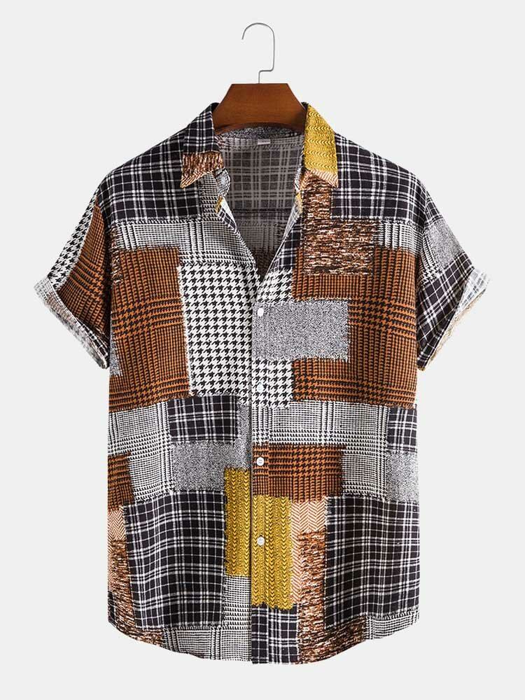 Mænds Holiday Plaid Houndstooth Color Block Patchwork-skjorter