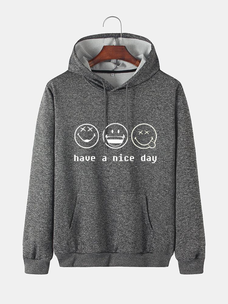 Mænds Tegneserie Smil Ansigt Slogantryk Bomuld Snøre Overhead Hættetrøjer