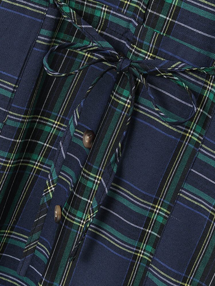 Plaid Print Lomme Kortærmet Jumpsuit Med Brede Ben
