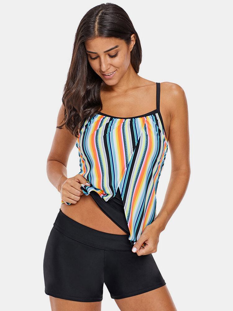 Plus Size Kvinder Farverige Stribede Spaghettistropper Ærmeløst Badetøj