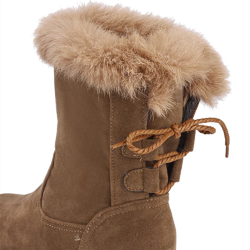 Plus Størrelse Kvinder Casual Stropper Varm Plys Foring Mid Calf Snestøvler
