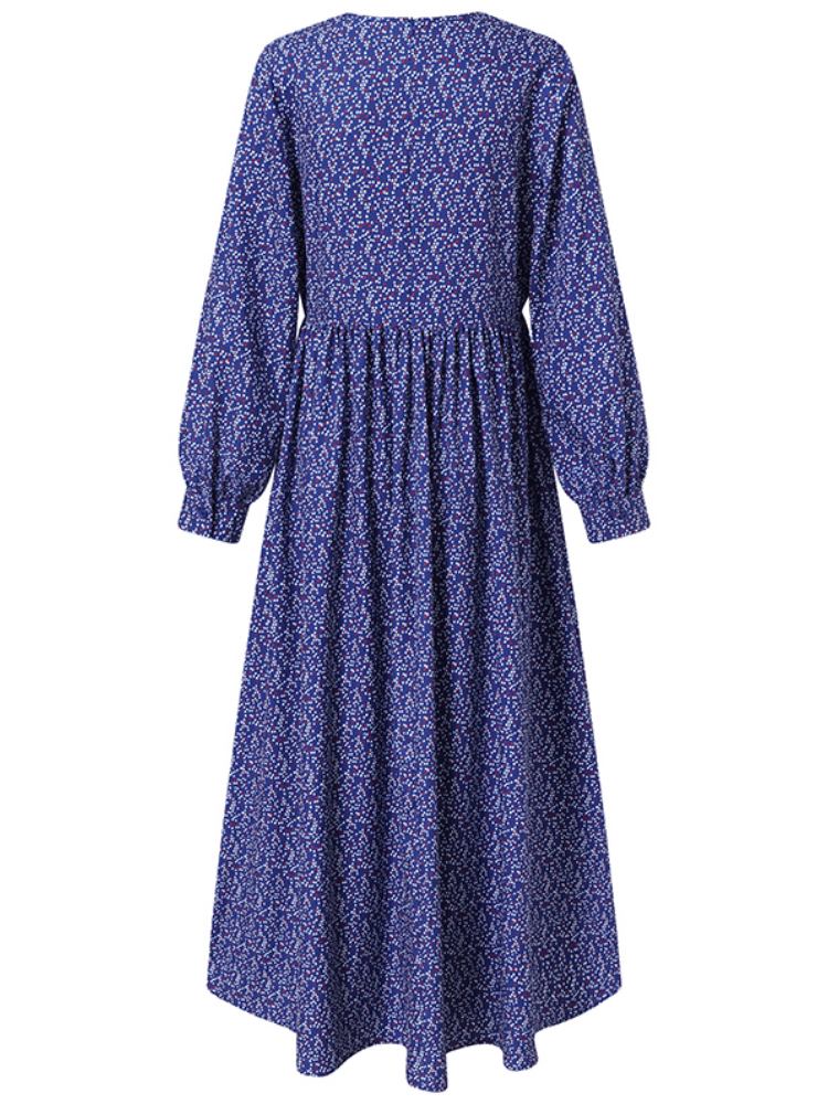 Polka Dot Print Rund Hals Ryg Lynlås Casual Langærmede Maxikjoler
