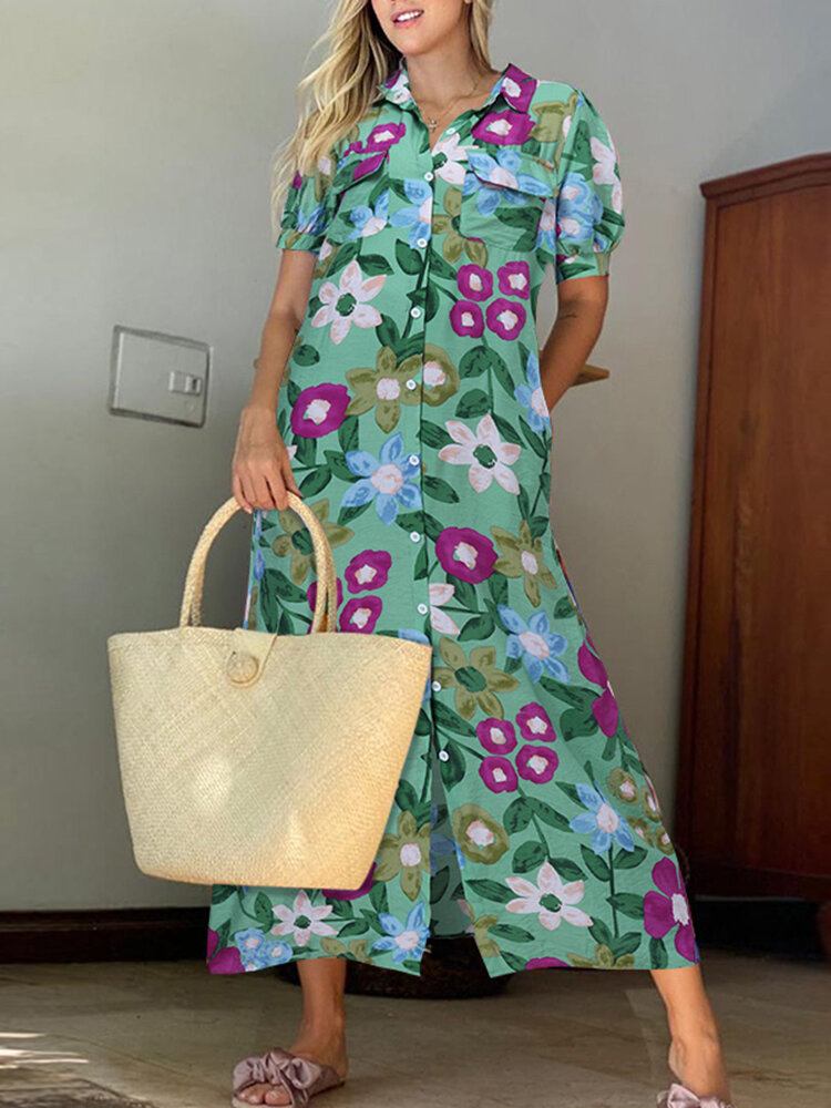 Puffærmet Ankellang Sommerfritid Feriekjole Til Kvinder