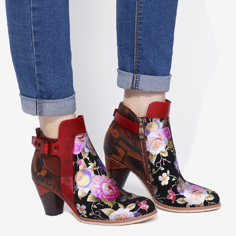Retro Blomstret Blomsterkombination Med Moderne Stil Bogstav Elegante Unikke Højhælede Støvler