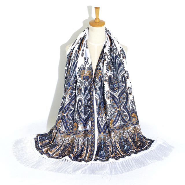 Retro Etnisk Stil Print Kvast Langt Tørklæde Dame Russisk Tørklæde