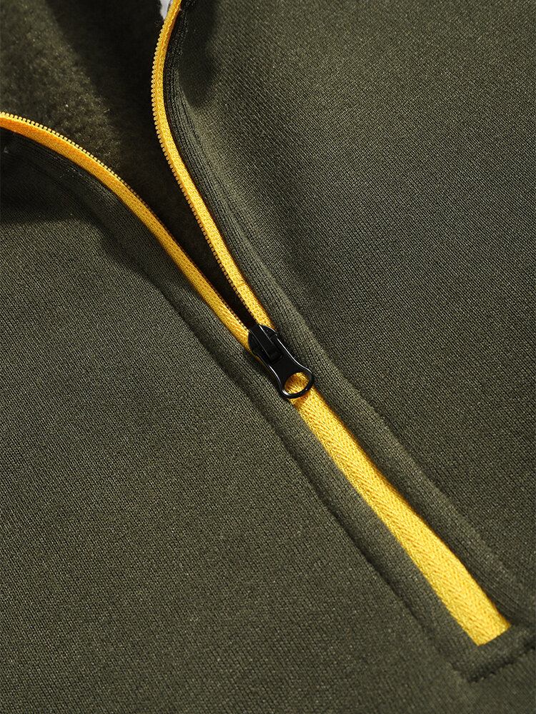 Simple Ensfarvet Mænds Halv Lynlås Hættetrøjer Med Lange Ærmer Foran Med Lomme