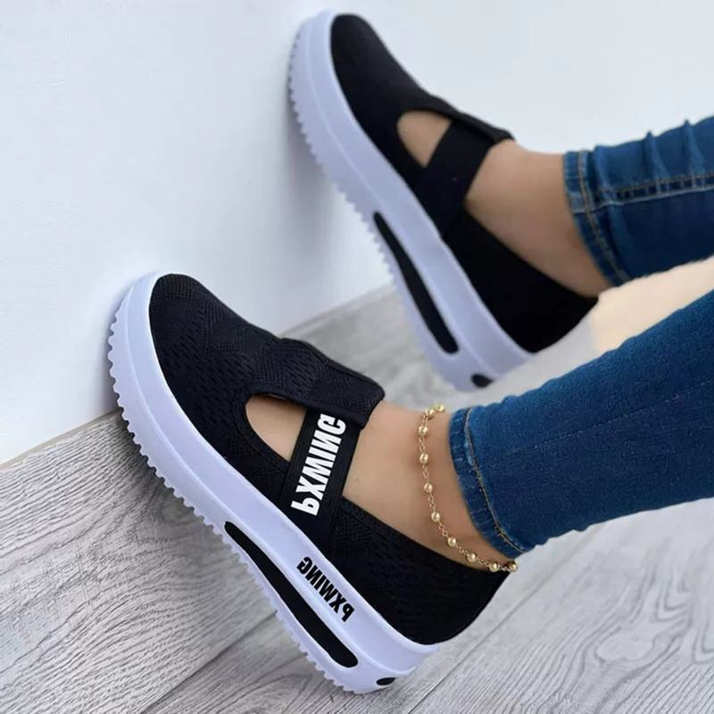 Stor Størrelse Kvinder Brevtryk Elastisk Slip-on Comfy Åndbar Mesh Comfy Platform Sneakers