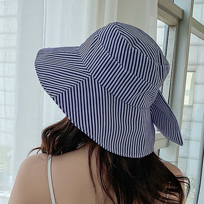 Stribet Strandsolhat Bomuld Huer Med Bred Skygge Til Kvinder Elegant Multifunktion Foldbar Anti-uv Kasket Til Dame