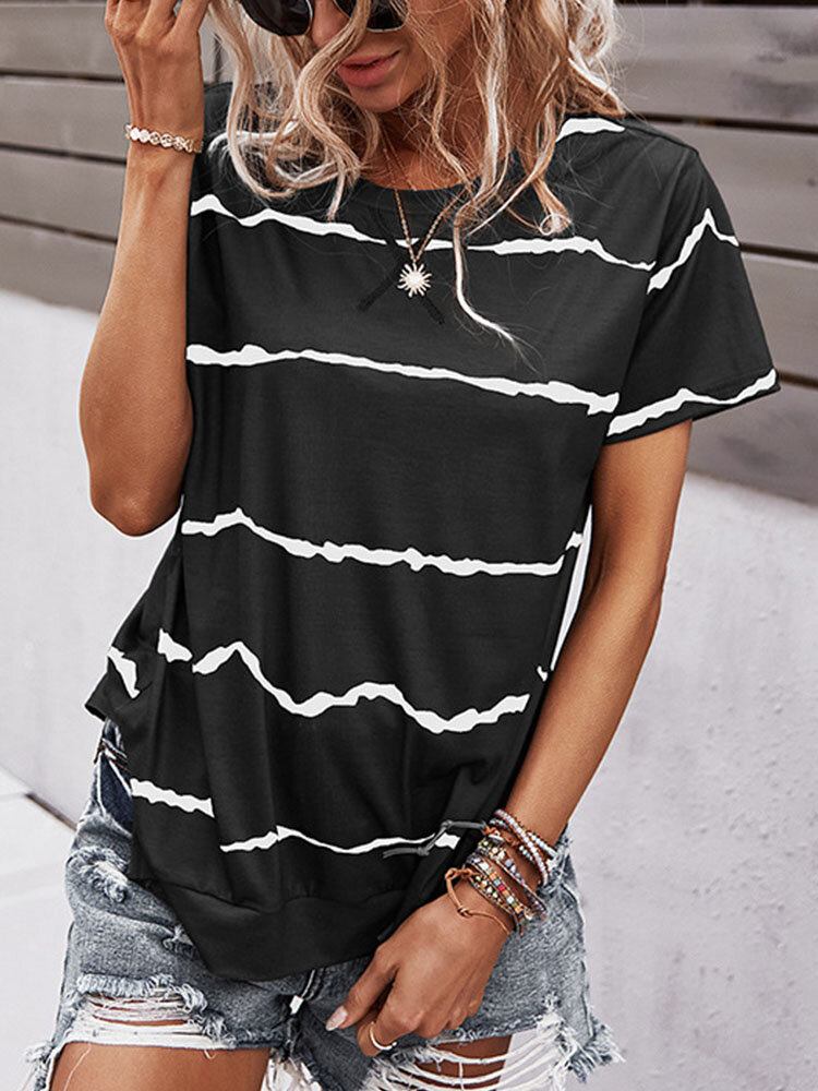 Stripe Print Kortærmet O-hals Løs Casual T-shirt Til Kvinder