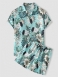 Tropical Plant Print Button Up Holiday Two Pieces Outfits