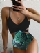 Tropical Plant Print Cross Cut Out Tie Back Hawaii Style One Piece Badedragt Til Kvinder