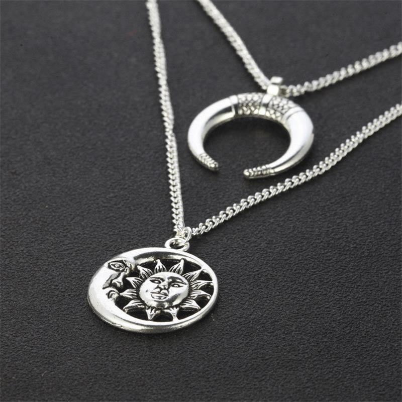 Vintage Sun Moon Pendant Halskæde Charm Chain Flerlags Halskæde Smykker Til Kvinder