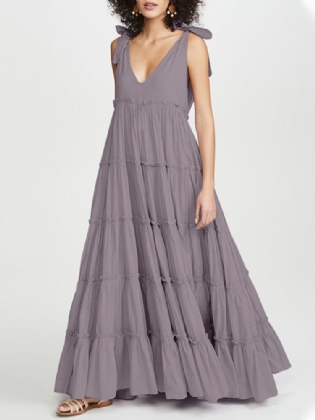 Solid Holiday Ærmeløs Plissering Plus Size Kjole Til Kvinder