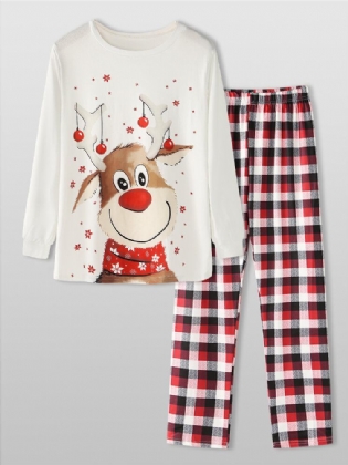 Mænds Juleteksttryk Top Elgmønster Løse Bukser Todelt Home Lounge Pyjamassæt