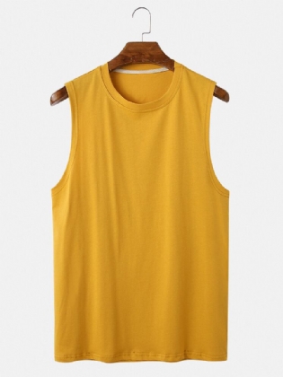 Ensfarvede Ærmeløse Afslappede Tanktops Til Mænd