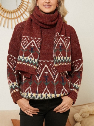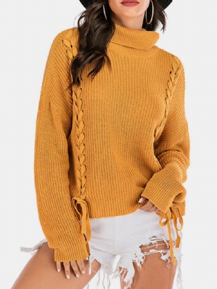 Kvinder Strikket Højhalset Langærmet Afslappet Sweater Med Lomme