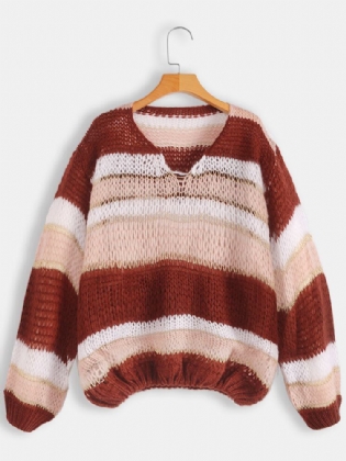 Dame Casual Stribede Sweatere Med V-hals